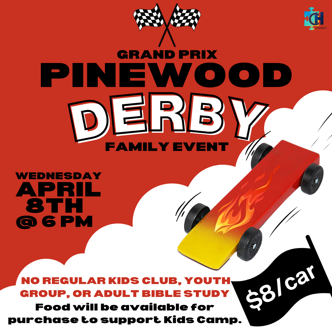 Join us on Wednesday, April 8th at 6:00 PM for an exciting night of racing, fun, and community at our Pinewood Derby!