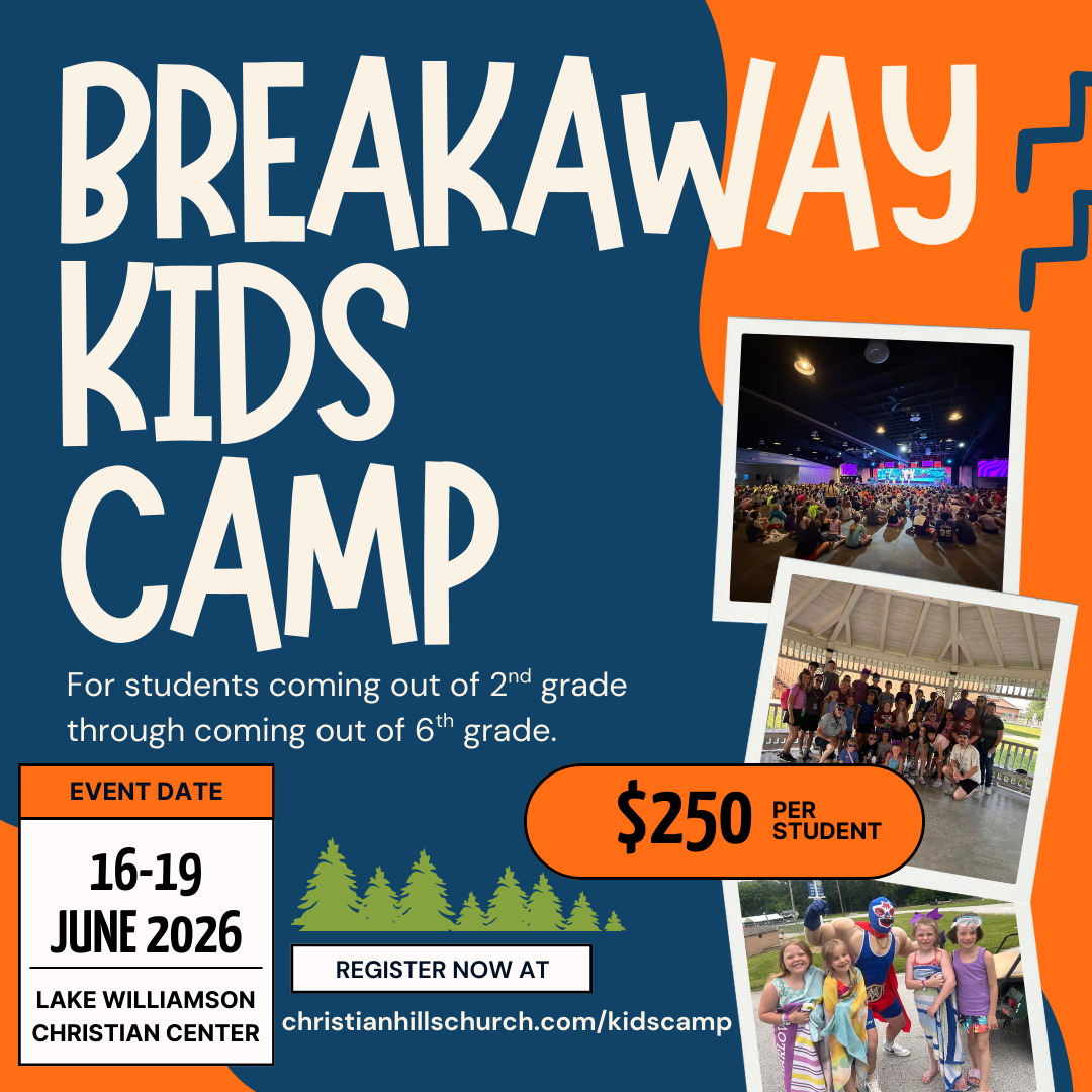 Spots fill quickly, so don’t wait! Get your child signed up and ready for an unforgettable week at Breakaway Kids Camp!